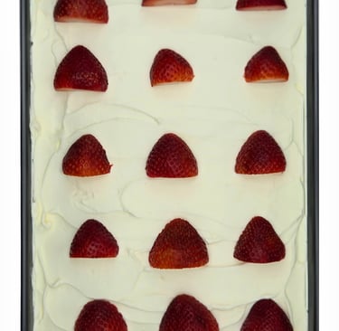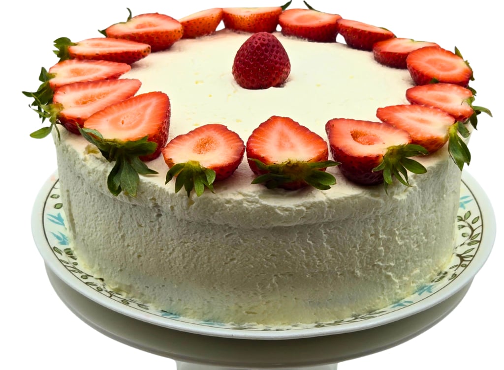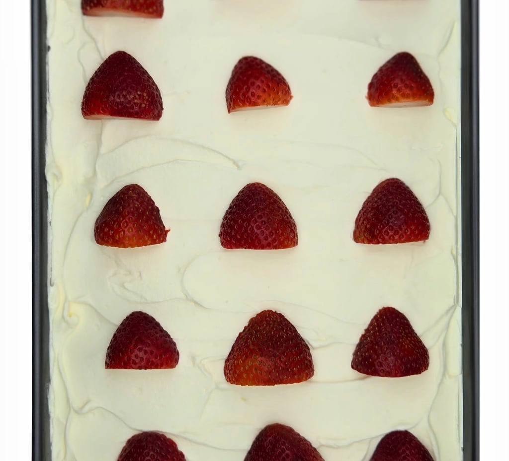 A cloud of freshly whipped cream blanketed the cake, lightly sweetened to let the milky flavors shine. For a fresh contrast, I crowned each slice with a bright, juicy strawberry — adding both a pop of color and a sweet-tart finish.
